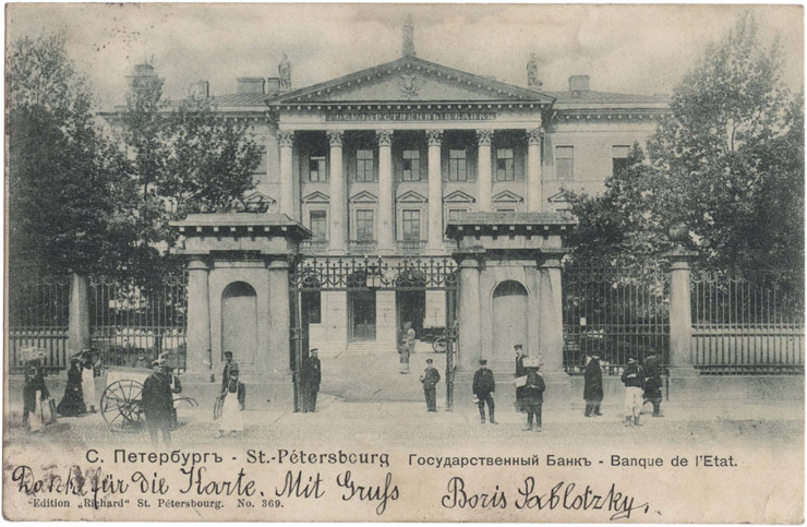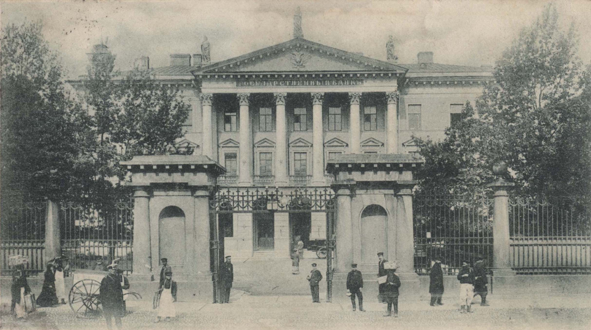 Здание Государственного банка в Санкт-Петербурге со стороны Садовой улицы. Открытое письмо. До 1904 года