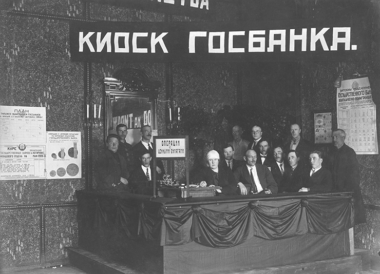 Открытие киоска Госбанка СССР в фойе кинотеатра в городе Вятке. Фото. 1928 год
