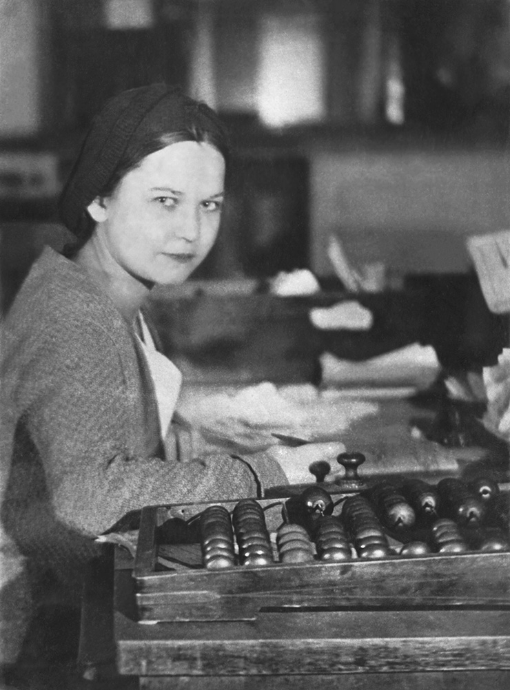 Бухгалтер Сибирской краевой конторы Госбанка СССР за работой (г. Новосибирск). Фото. 1938 год