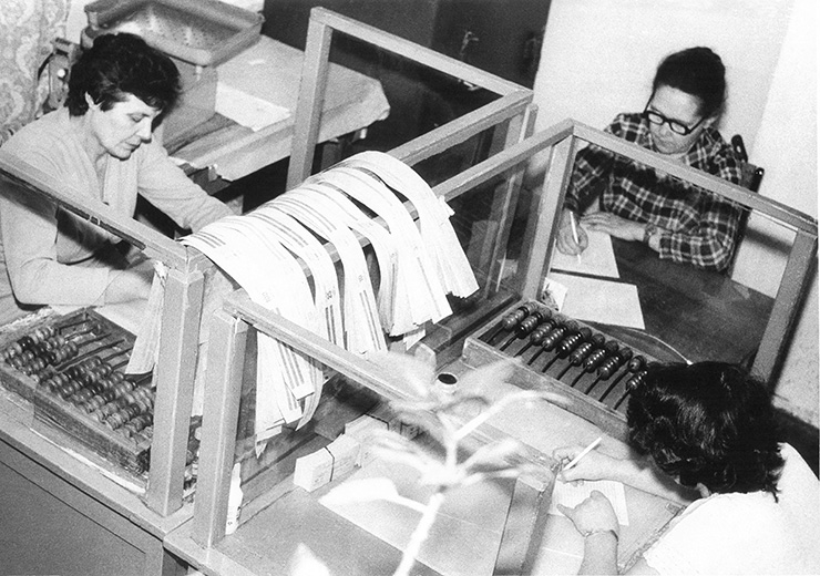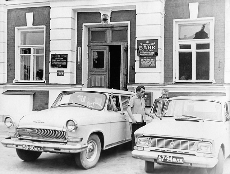 Получение наличных денег в расходной кассе отделения Госбанка СССР. Фото. 1970-е годы