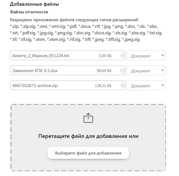 Обращаем внимание, что необходимо указать вид документа для каждого приложенного файла: