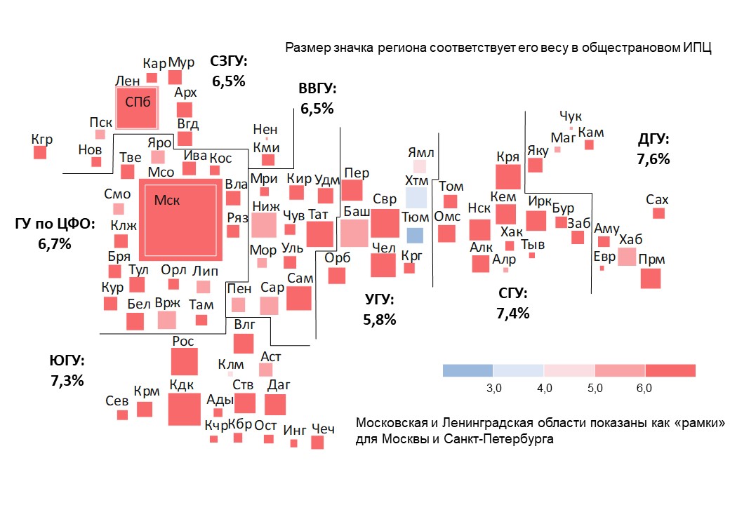 Рост замедлился на Юге, Урале и в Волго-Вятке. На Дальнем Востоке он сменился снижением. В Сибири темпы роста сохранились на уровне прошлых месяцев, в Центральной России и на Северо-Западе — ускорились.