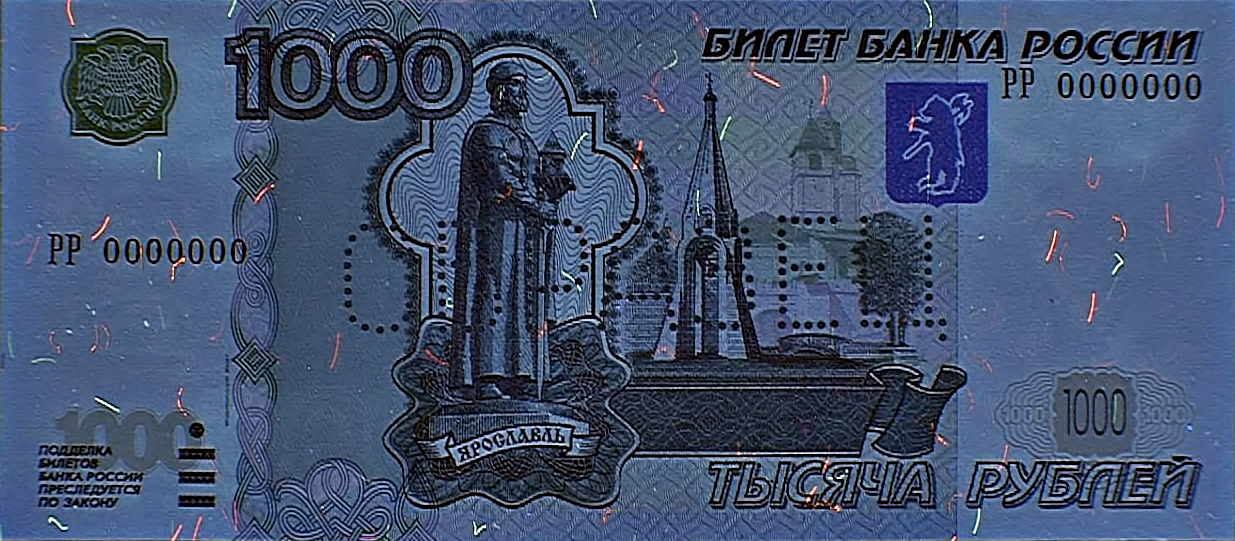 - изображения банкноты в ультрафиолетовом и инфракрасном свете имеют отличия от банкноты образца 1997 года.