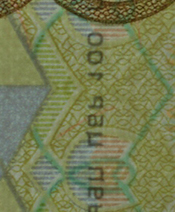 Банкнота имеет два серийных номера, расположенных на лицевой стороне банкноты и состоящих из двухбуквенного обозначения серии и семи цифр.