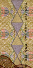 линий, расположенные на купонных полях оборотной стороны банкноты, невооруженным