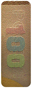 Четыре фрагмента ныряющей голографической защитной нити шириной 2 мм выходят на поверхность лицевой стороны банкноты.