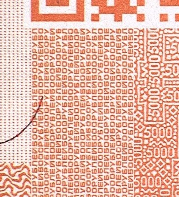 В нижней правой части лицевой стороны банкноты расположен QR-код, содержащий ссылку на страницу сайта Банка России с описанием защитных признаков банкноты.