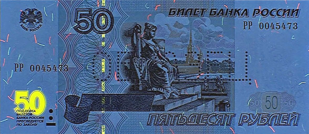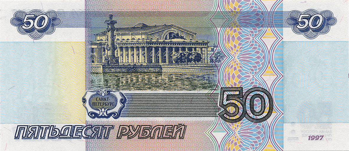 Банкнота Банка России образца 1997 года номиналом 50 рублей модификации 2001 года