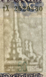 сформированный повторяющимся числом 50. В нижней части банкнот расположен