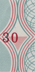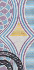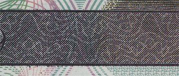 линий, расположенные на купонных полях оборотной стороны банкноты, невооруженным