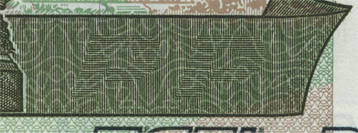 линий, расположенные на купонных полях оборотной стороны банкноты, невооруженным