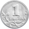 - в центре (ближе к правому краю) — обозначение номинала монеты: цифра 1, под ней — слово «КОПЕЙКА», расположенное горизонтально;