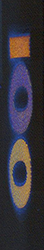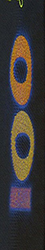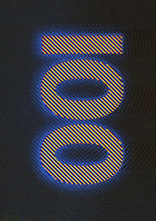 Под воздействием УФ-излучения наблюдаемые однотонные цифры номинала при наклоне банкноты приобретают разную окраску. При повороте банкноты на 180º окраска каждой цифры изменяется.