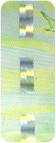 The banknote paper contains two types of security fibres: coloured, with alternate sections of red and blue, and grey ones.