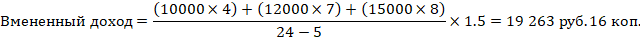 Заемщик обратился в кредитную организацию 15.06.2023 за получением ипотечного кредита (займа). В заявлении-анкете заемщик указал, что величина его доходов в месяц составляет 30 000 руб. В течение расчетного периода заемщик осуществлял платежи по иным кредитам (займам), информация о которых содержится в Кредитных отчетах. При этом в течение 5 месяцев, непосредственно предшествующих месяцу расчета ПДН, у заемщика отсутствовала кредитная активность. В рамках расчетного периода имелись периоды, в которых у заемщика отсутствовала кредитная активность, которые непосредственно не предшествовали месяцу расчета ПДН. Расчет Вмененного дохода в указанном примере должен быть произведен следующим образом.