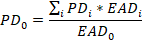 В случае, когда банк определяет для каждого из временных периодов оценки PD отдельно, для приведения в отчете требуется указать агрегированные величины, определив их следующим образом: