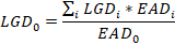 В случае, когда банк определяет для каждого из временных периодов оценки LGD отдельно, для приведения в отчете требуется указать агрегированные величины, определив их следующим образом.